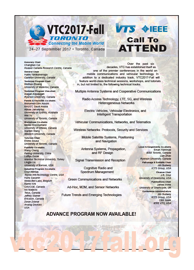Welcome to the June 2017 issue of VTS Mobile World—your IEEE Vehicular Technology Society newsletter.