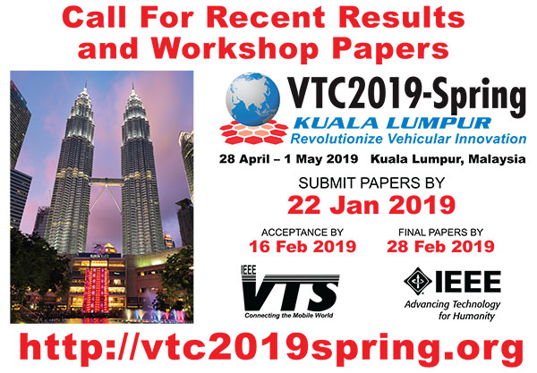 Find out the latest updates and upcoming deadlines for VTC2019-Spring in Kuala Lumpur, VTC2019-Fall in Honolulu, Hawaii, and VPPC 2019 in Hanoi, Vietnam!  Read More...